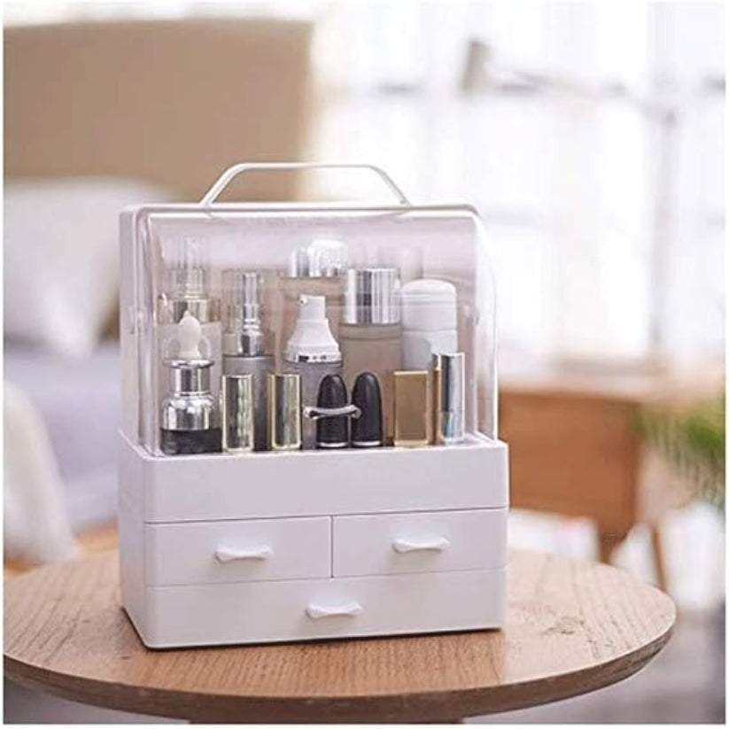 - Upgraded Design: Gorgeous white finish decorated with clear box dustproof and waterproof lid, fit for vanity, bathroom counter or dresser, the makeup case will stand out wherever you place it for its neat and innovative look, bringing elegant glamour to every lady.